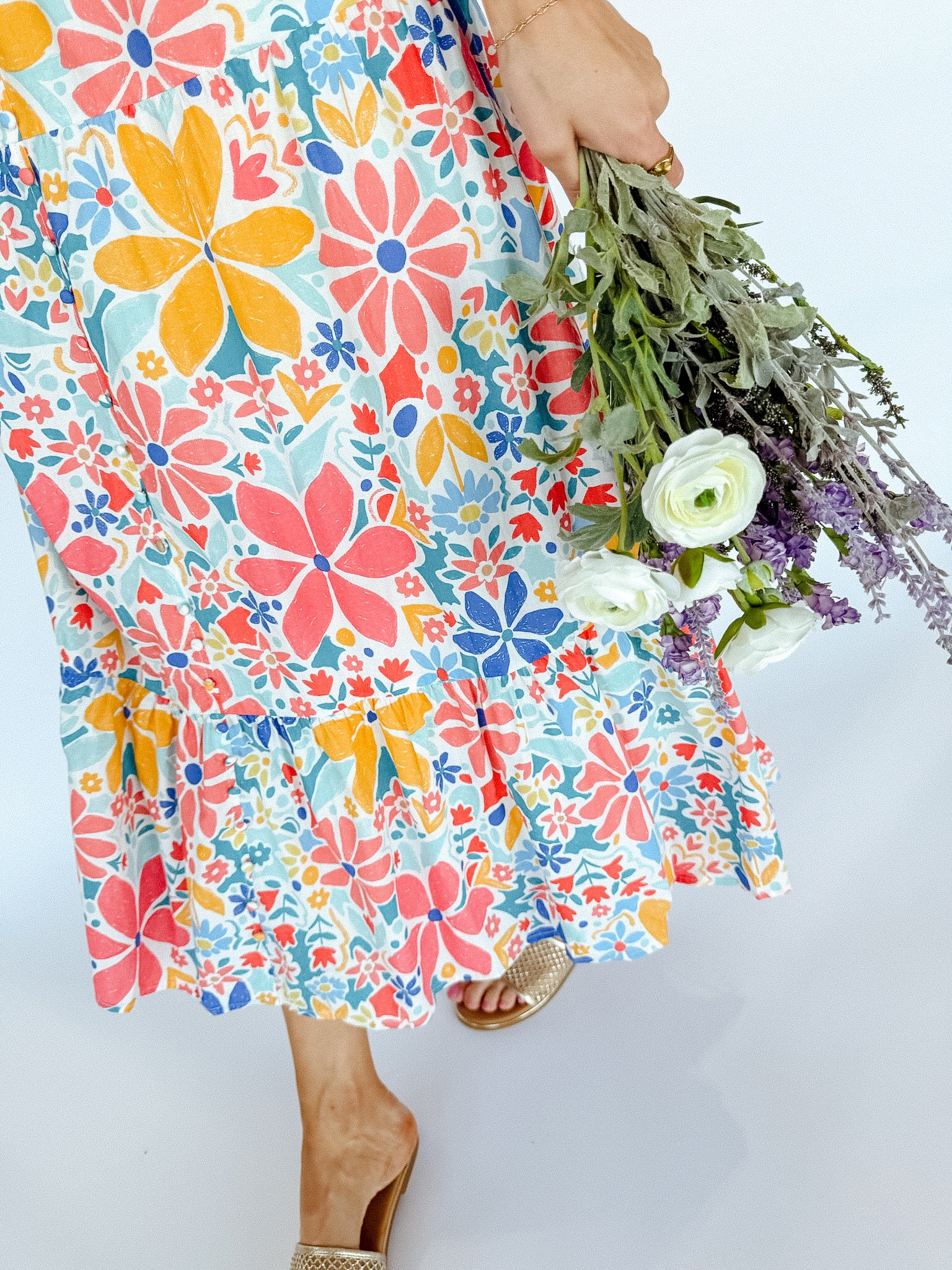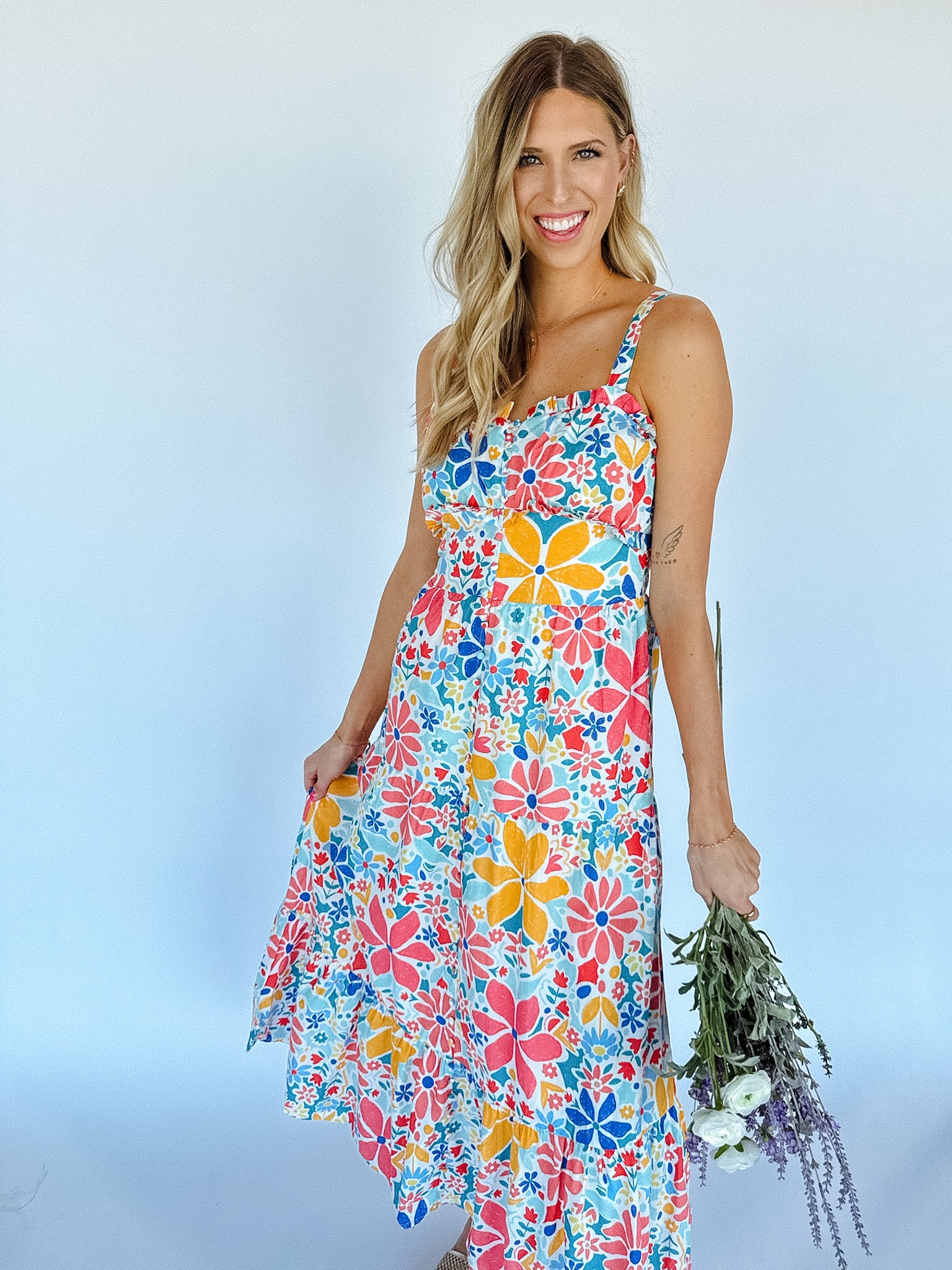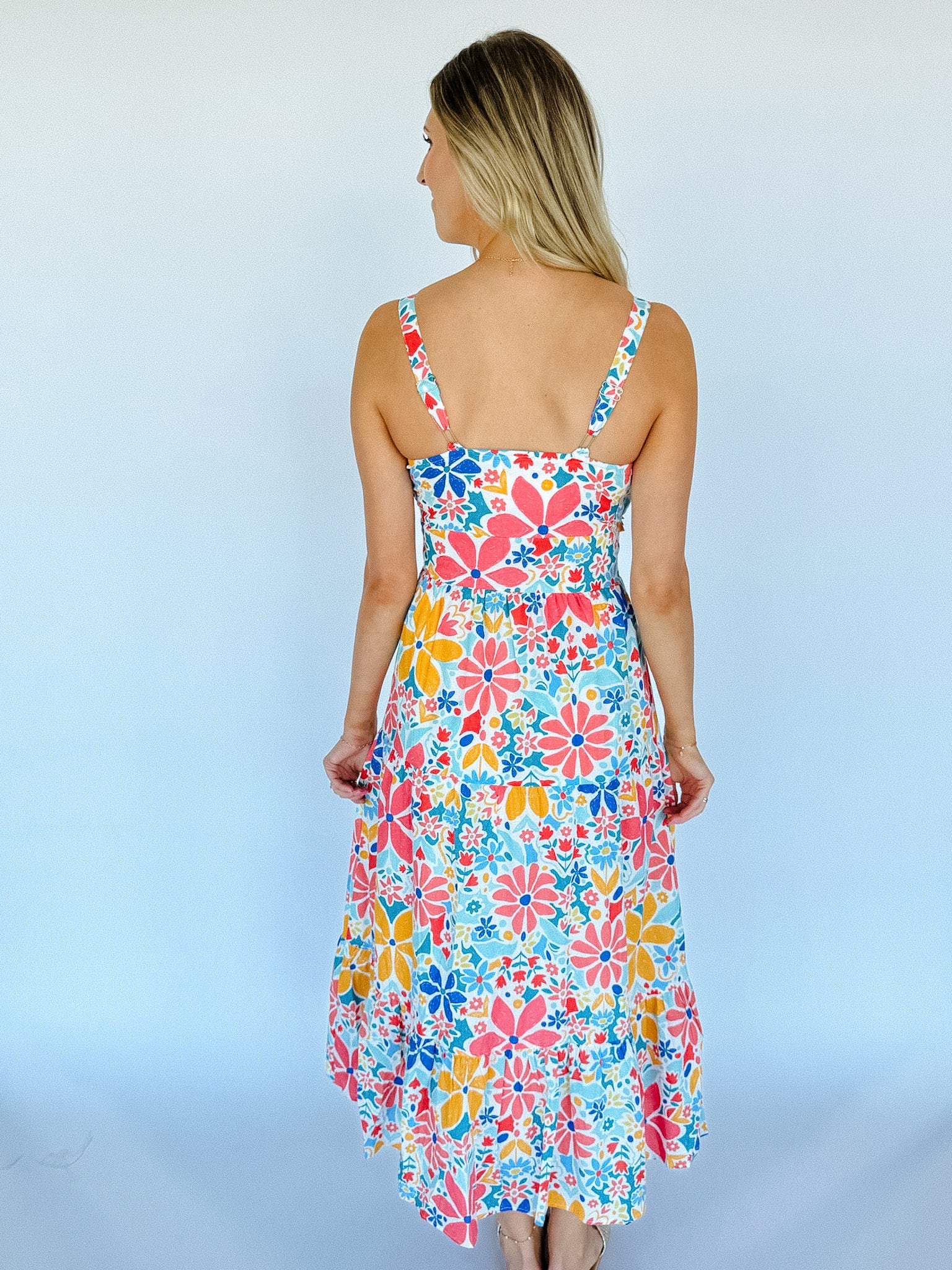 Take a stroll in the countryside with our Bethany Floral Maxi Dress. Featuring playful ruffle detailing, shirred chest for a flattering fit, and tiered construction for a whimsical touch. Perfect for brunch or a night out with friends.