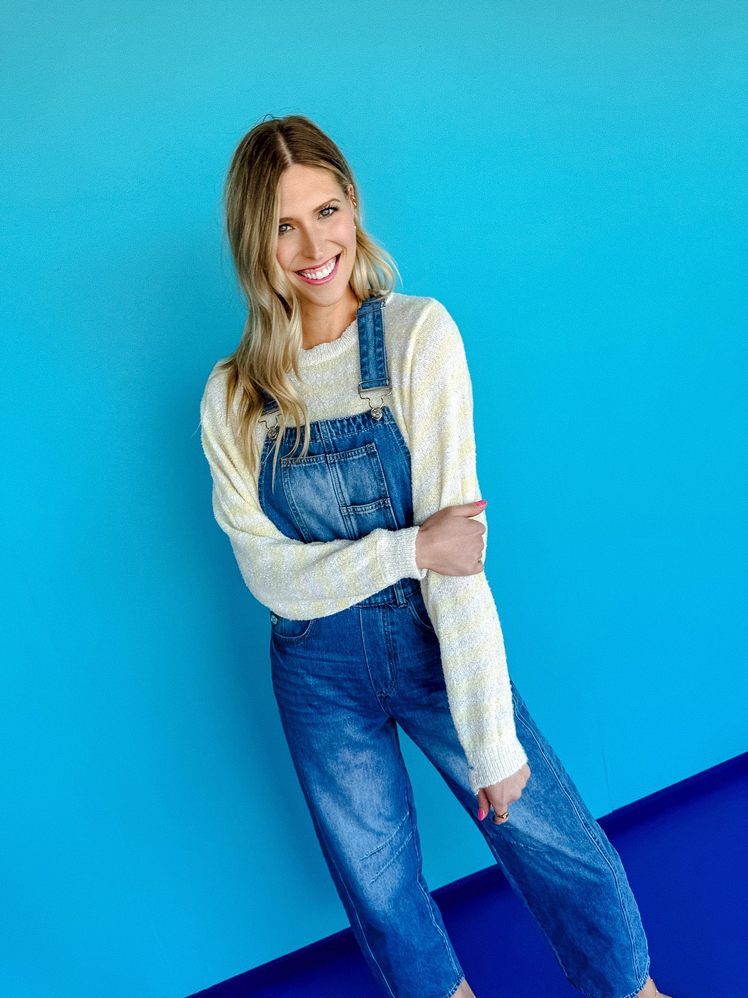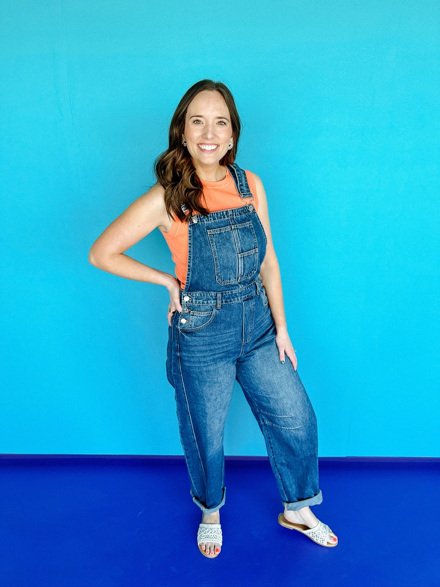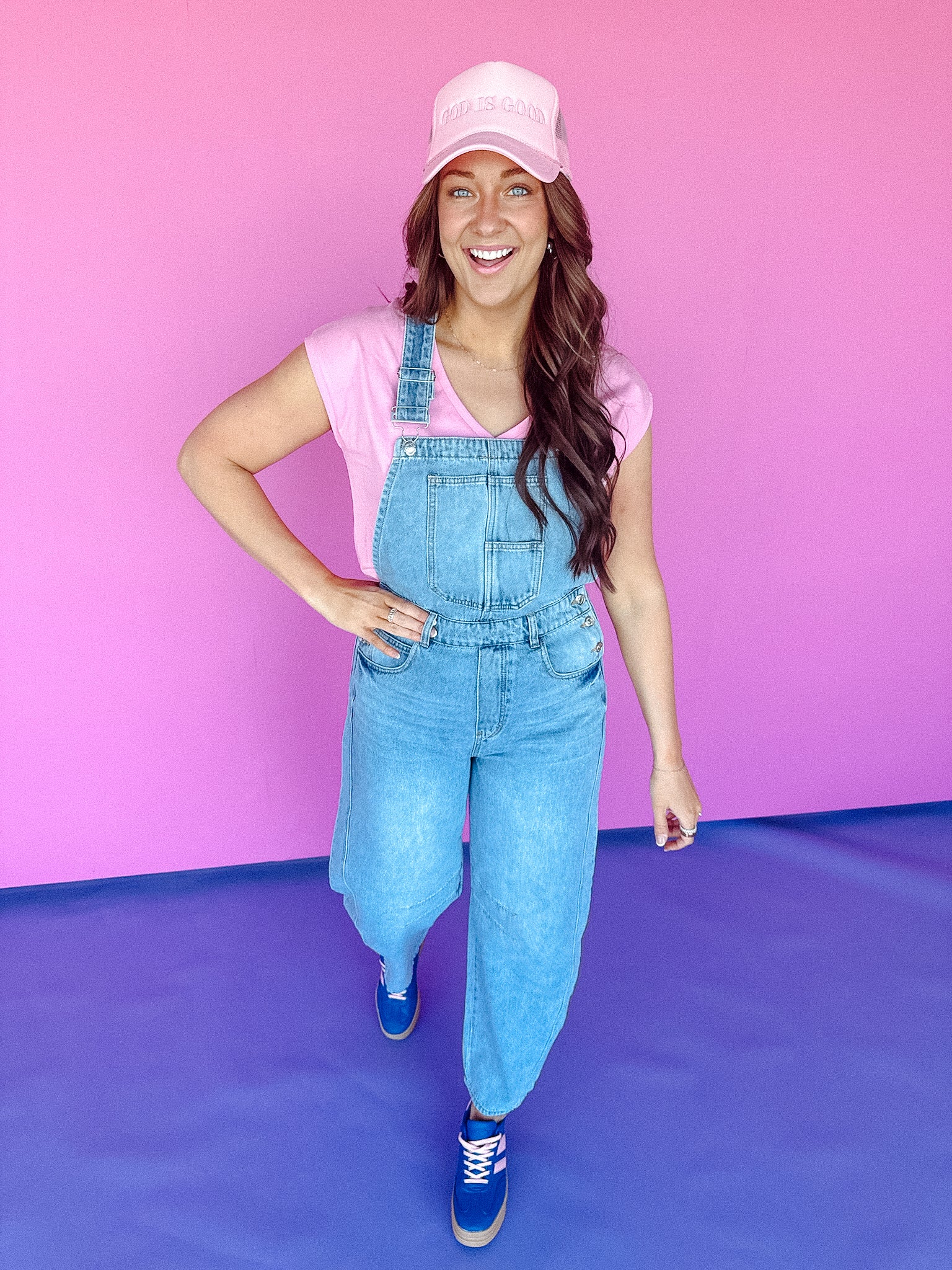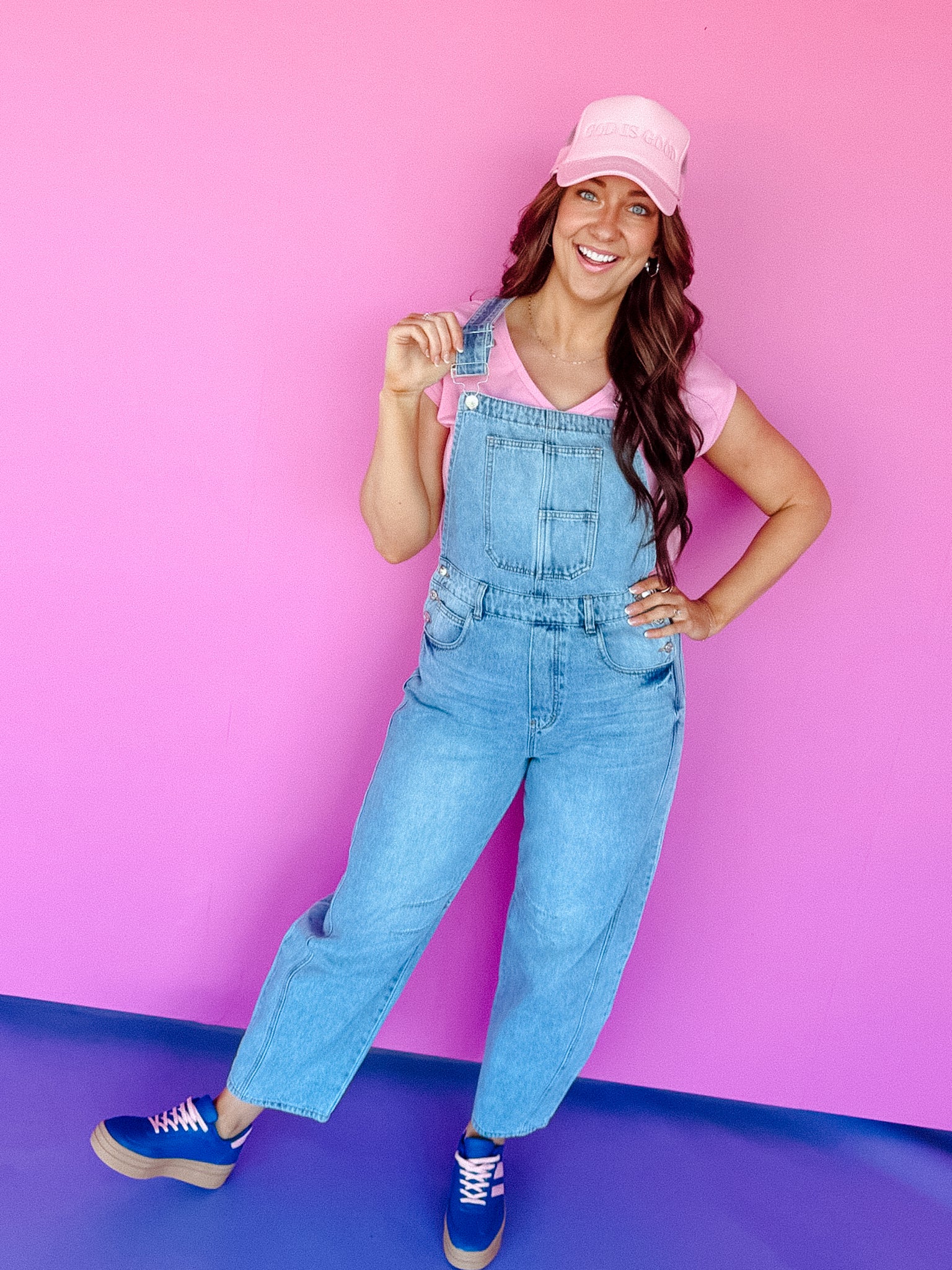 Our Dominique Denim barrel overalls offer a modern twist on the classic overall design, featuring a relaxed, wide-leg silhouette that provides both style and comfort. The barrel shape of the legs creates a unique, voluminous look, while the adjustable straps and bib front maintain the traditional overall aesthetic. Made from sturdy denim, these overalls are designed for durability and casual wear. Functional pockets add practicality, making them perfect for everyday outfits. These versatile overalls can be dressed up with a fitted top or kept casual with a simple tee for a laid-back, stylish vibe.