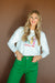 Hit the slopes in style with this cozy crewneck sweater featuring a charming embroidered skiing print. The soft, off-white knit provides the perfect canvas for the playful winter-themed design. Whether you're après-skiing, snuggling by the fireplace or running errands around town, this versatile piece brings a touch of mountain adventure to your everyday wardrobe. Comfortable, casual, and undeniably fun—your new favorite sweater awaits.