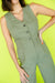 Step out in style with the Tess Button Down Jumpsuit in Olive. Featuring a flirty v-neck and chic button-front design, this jumpsuit adds a playful twist with its open back detail. Functional pockets keep essentials close while elevating your look for any dressy occasion. Perfect for turning heads with effortless charm! Pair with a new piece of jewelry to complete the look!