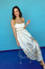 Fits true to size. Garment has a smocked back for a flexible fit in the bust. Material has no stretch.